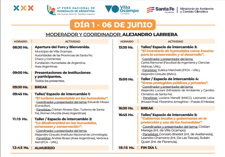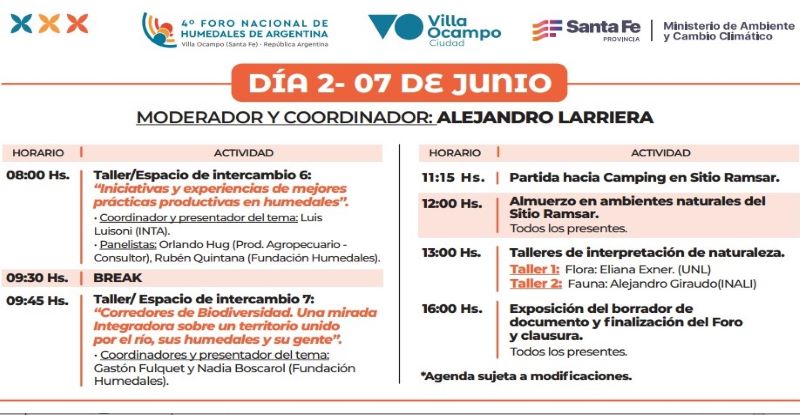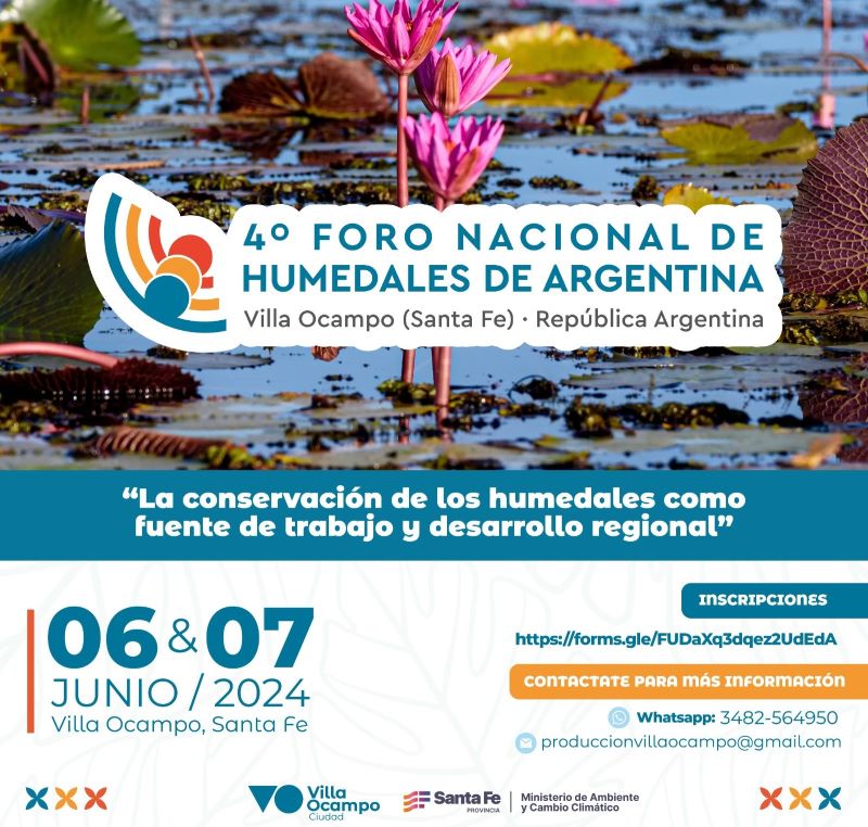 Los días jueves 6 y viernes 7 de junio, Villa Ocampo será sede del 4º Foro Nacional de los Humedales con la presencia de destacados expositores y representantes gubernamentales, universidades e instituciones y organizaciones públicas y privadas vinculadas con la cuestión ambiental de todo el país.