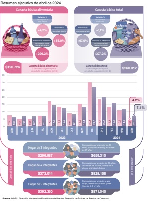 También se conocieron las canastas básicas: una familia de cuatro personas necesitó $828.158 el mes pasado para no ser pobre y $373.044 para no caer en la indigencia.