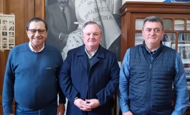 El intendente Leandro Chamorro, acompañado del Sub Secretario del Ministerio de Igualdad y Desarrollo Humano, Federico Pezz visitó en la Legislatura al Senador Provincial Felipe Michlig al día siguiente de su reasunción como presidente del centenario Partido la Unión Cívica Radical.