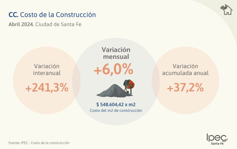 Santa Fe: Costo de la construcción (CC) de abril 2024