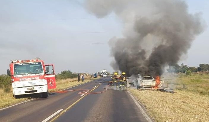 En distrito de la localidad de Tacuarendí, con fecha 05-06-24 – a las 9,45 horas – Personal de la Subcomisaría 1ª tomó conocimiento que sobre Ruta Nac. 11 se estaría quemando un automóvil.