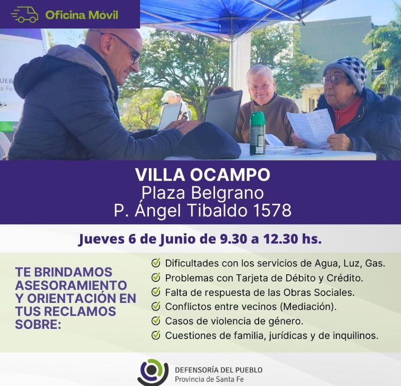 La Oficina Municipal de Información al Consumidor (OMIC) gestionó la presencia en esta ciudad de la Oficina Móvil de la Defensoría del Pueblo de la Provincia de Santa Fe.