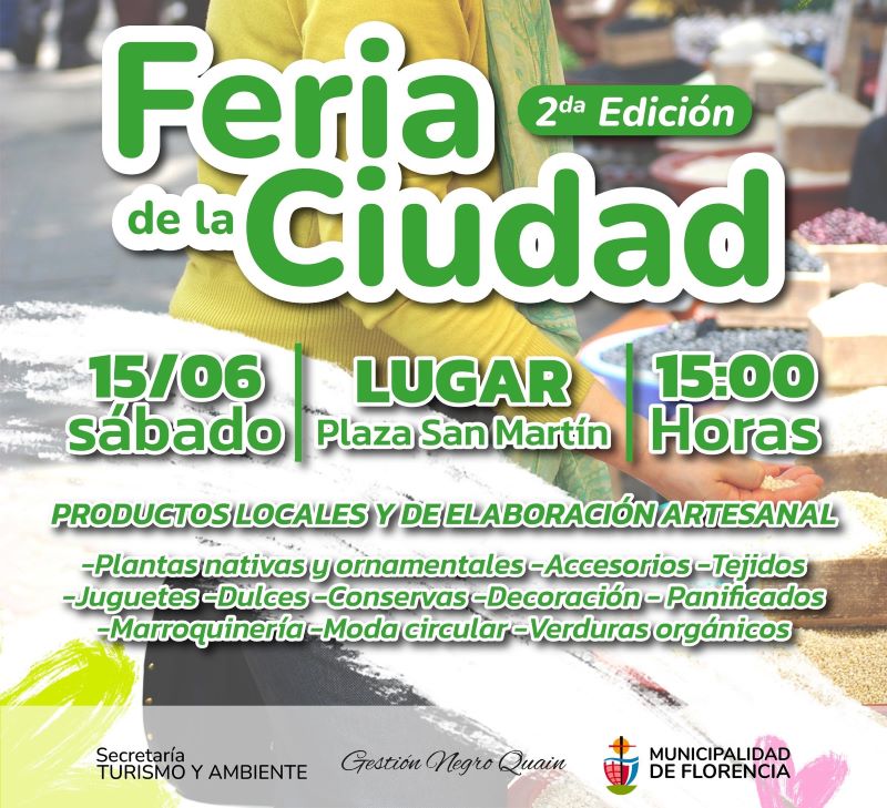 Florencia: Feria de la Ciudad, este sábado en la plaza San Martín