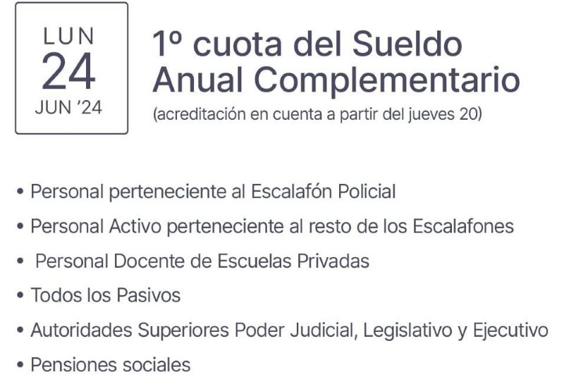Cronograma de pago de la primera cuota del Sueldo Anual Complementario