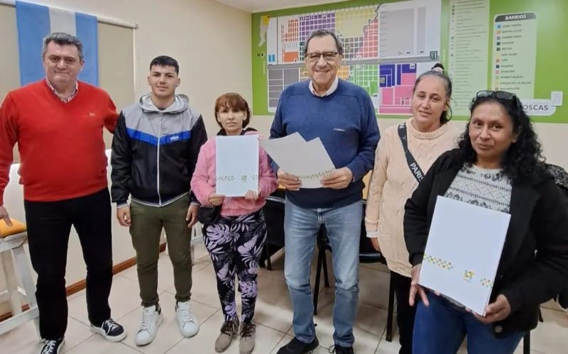 En la mañana de este miércoles 26 de junio, el intendente de la ciudad de Las Toscas, Leandro Chamorro, junto al Subsecretario de Gestión y Promoción de Políticas Sociales Provincial, Federico Pezz entregaron a cinco vecinos el beneficio de la pensión Ley N°5110.