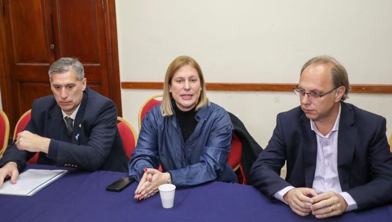La vicegobernadora de la provincia, Gisela Scaglia, junto al ministro de Economía, Pablo Olivares, y el director de la Agencia de Cooperación Económica y Financiamiento Externo, Gonzalo Saglione, brindaron una conferencia de prensa en la que hicieron un balance de la misión institucional a Europa para buscar financiamiento externo para proyectos de infraestructura y desarrollo económico.