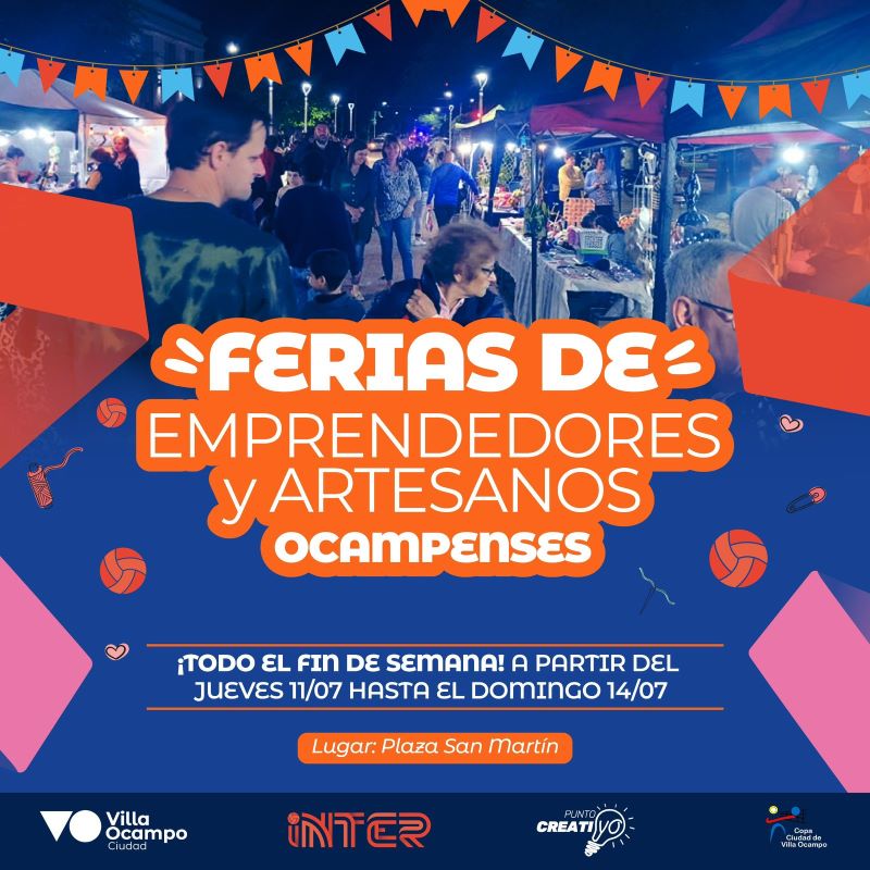 En el marco del 33° CAMPEONATO INTERPROVINCIAL Y 26° INTERNACIONAL DE VOLEY «Copa Ciudad de Villa Ocampo, Alexis Nocenti», toda la comunidad ocampense y nuestros visitantes podrán disfrutar y comprar las producciones de nuestros emprendedores y artesanos, con ferias como la de Punto CreatiVO y muchas más.