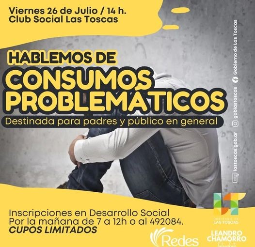 Junto a el Centro Terapéutico para el Abordaje Integral de Adicciones «REDES», el gobierno de la ciudad de Las Toscas invita a una charla súper importante, «Hablemos de Consumos Problemáticos».