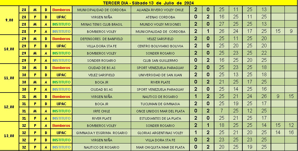 DeportesDestacadas Villa Ocampo, vóley: Resultados del tercer día de competencia 13 julio, 2024 Compartir en Facebook Compartir en Twitter tweet Compartimos los resultados de la tercera jornada llevada a cabo en la ciudad de Villa Ocampo, donde se está jugando el 33 Campeonato interprovincial y 26 ° internacional de Vóley «Copa ciudad de Villa Ocampo, Alexis Nocenti».