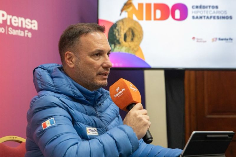 El ministro de Obras Públicas de la Provincia, Lisandro Enrico, brindó este martes una conferencia de prensa en la que se refirió a la alta demanda para acceder a los créditos Nido, una iniciativa que impulsan la Provincia y el Banco Municipal con líneas de créditos hipotecarios con la tasa más baja del país.