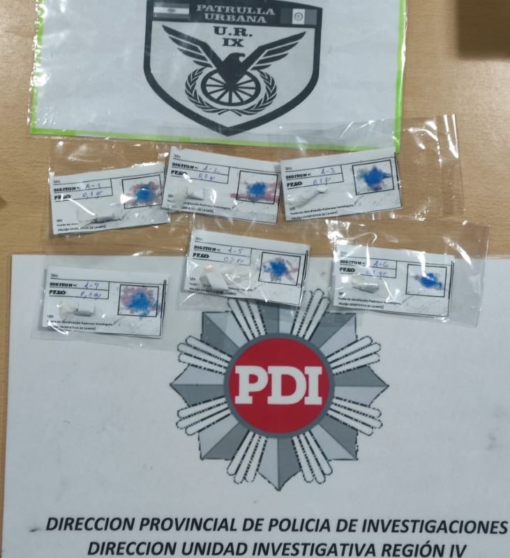 Identificado resultó ser Un vecino de ese medio. Se realizó requisa y entre sus prendas de vestir se incautó (06) envoltorios de nylon trasparente las cuales resguardan cierta cantidad de sustancia blanquecina pulverulenta de similares características a la cocaína.
