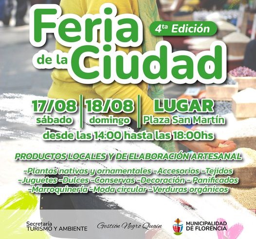 La Feria se concretará en la plaza San Martín y cuenta con el apoyo de la Municipalidad de Florencia.