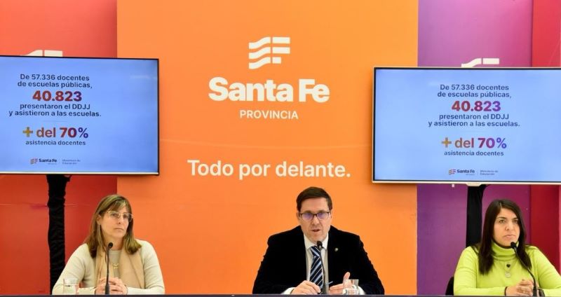 Lo afirmó el ministro de Educación al presentar un informe de la baja adhesión de los maestros al paro de Amsafe el pasado miércoles. La cifra representa que el 71 % de los trabajadores concurrieron a trabajar ese día y no se sumaron a la huelga. El personal escolar tiene la opción de completar la Declaración Jurada en “Mi Legajo” hasta este viernes a las 23.59.