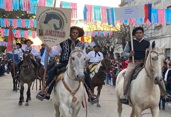 Cada una de las instituciones desfilaron demostrando su orgullo, desplegando banderas y estandartes, mostrando la diversidad y la vitalidad que caracteriza a la Ciudad Amable, cabe destacar que después de varios años sin participar, volvieron a ser protagonistas nuevamente, las agrupaciones tradicionalistas de jinetes en sus respectivos briosos caballos; finalmente y para el cierre, la banda militar “Pucará” entonó el feliz cumpleaños, y el corte de la gran torta conmemorativa por los 144 años de Las Toscas, se produjo por parte del anfitrión, intendente Leandro Chamorro, que con gesto amable y festivo, comenzó la repartición de porciones a cada vecino, quienes disfrutaron del dulce homenaje a la historia y comunidad.