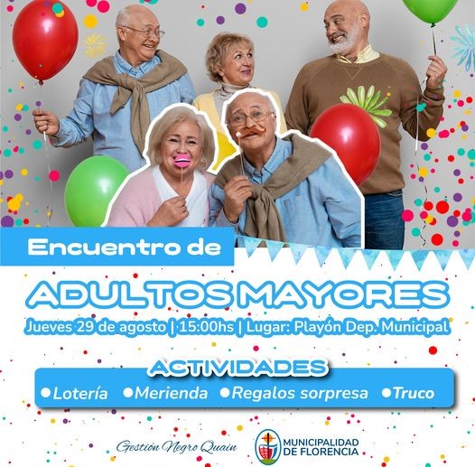 Este jueves 29 de agosto desde las 15 horas, en el playón deportivo municipal, se realizará un nuevo encuentro de adultos mayores, organizado por la Municipalidad de Florencia.