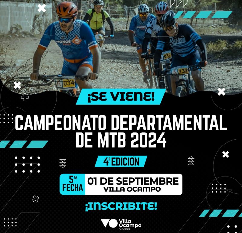 El área de Deportes de la Municipalidad de Villa Ocampo, junto a ArCiclismo invitan a ciclistas y todo interesado a participar de la 5ª fecha del Campeonato Departamental de Mountain Bike (MTB), en su 4° edición, que se llevará a cabo en esta ciudad, en el marco de la 10ª Fiesta Provincial de Pesca Embarcada para Mujeres.