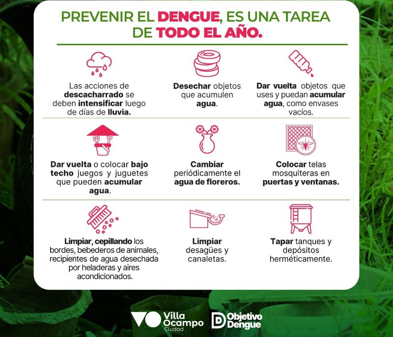 La prevención del dengue comienza en casa y es una tarea de todo el año. Desde la Municipalidad de Villa Ocampo, continúa trabajando en la concientización y cuidados para evitar la propagación del dengue.