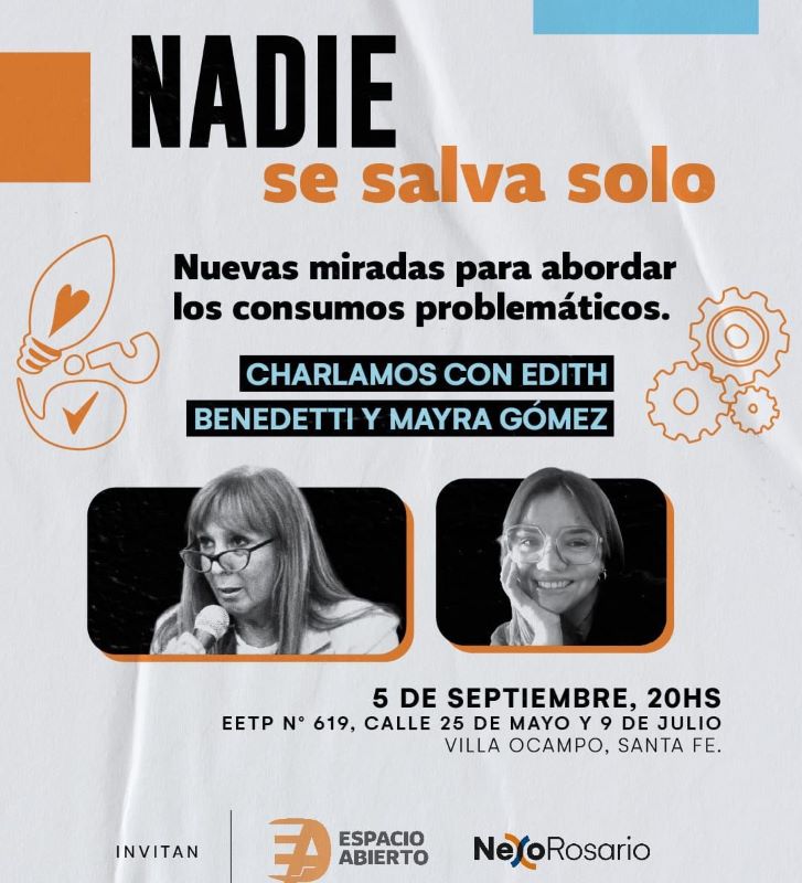 El próximo jueves 5 de septiembre a las 20:00 horas, la E.E.T.P Nº619 será sede de una charla sobre consumos problemáticos, dirigida a docentes, estudiantes de nivel terciario y equipos de salud.