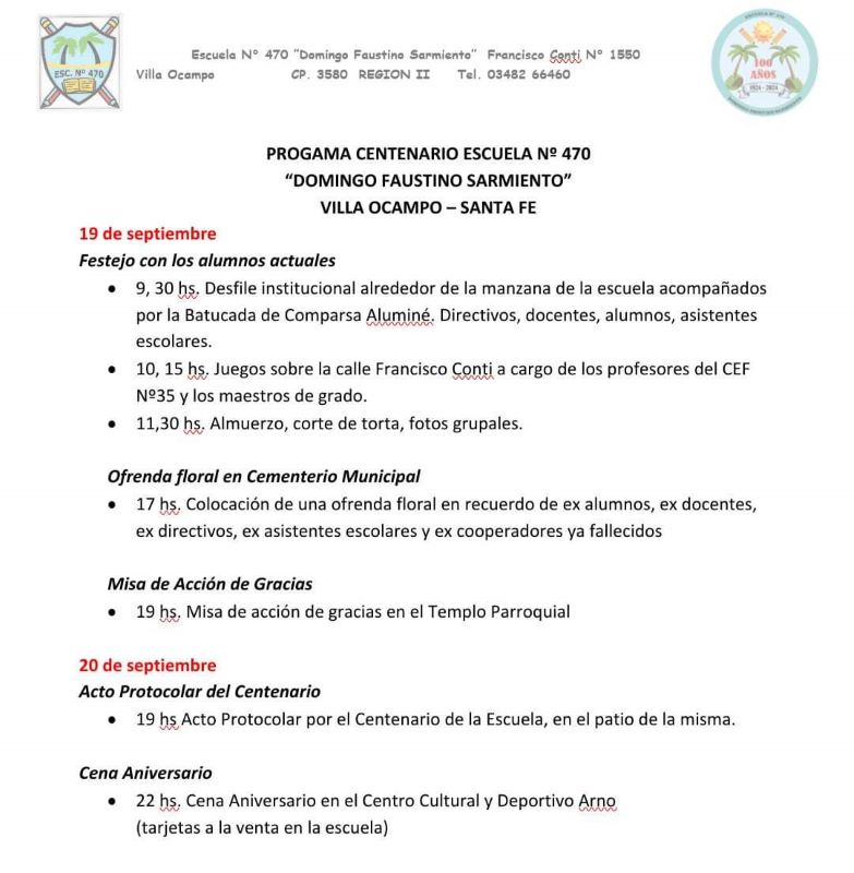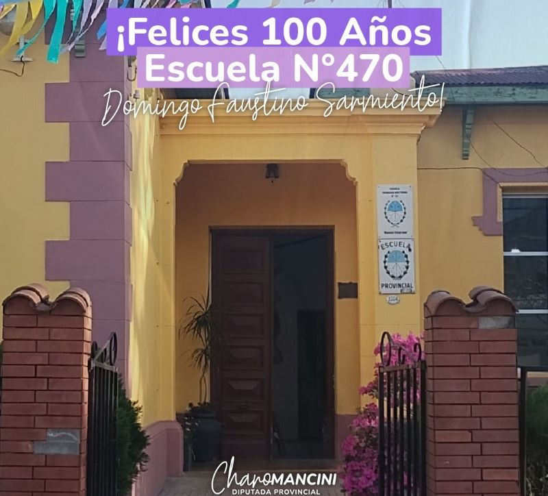 La Diputada Provincial María del Rosario Mancini felicita en su 100° Aniversario a la Escuela Provincial N° 470 “Domingo Faustino Sarmiento” de Villa Ocampo. Un saludo especial a su Directora Elsa E. Gómez, al equipo de administración, docentes, alumnos y todos los que forman parte del presente y la historia de esta centenaria institución.
