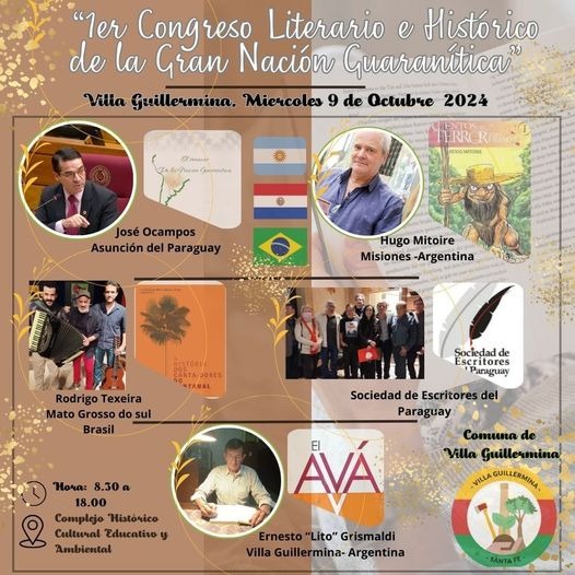 Luego de ello, comienza el primer Congreso Literario e Histórico de la «Gran Nación Guaranítica», donde estará exponiendo el afamado historiador, escritor, conferencista internacional, Dr. José Ocampos, de Asunción del Paraguay.