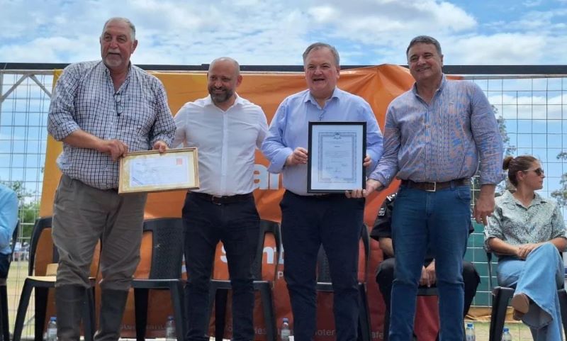 En la oportunidad las autoridades provinciales entregaron al presidente de la Sociedad Rural Francisco Mayoraz las declaratorias “De Interés” provincial de las Cámaras de Senadores y Diputados, además de importantes aportes económicos para cubrir gastos de organización del tradicional encuentro que se desarrolló durante todo el fin de semana largo y que finalizará el lunes con un gran remate.