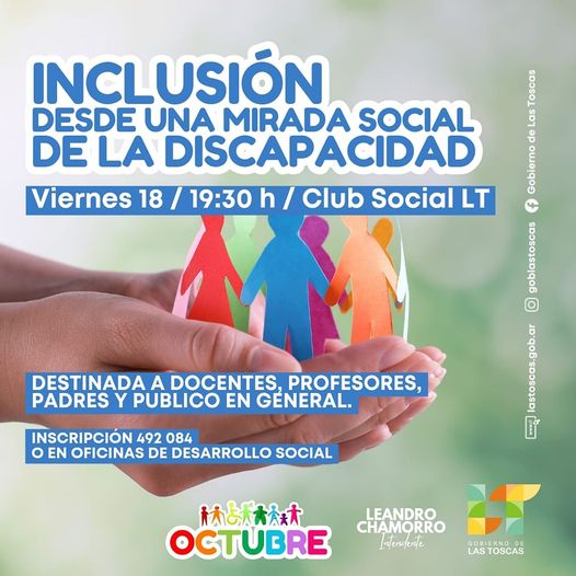 En el marco de las actividades del Mes de los Adultos Mayores y la Discapacidad, el gobierno de la ciudad de Las Toscas te invita a participar de la charla «Inclusión desde una Mirada Social de la Discapacidad».