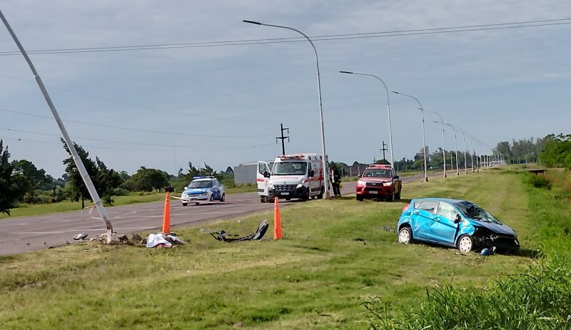 El impacto se dio en el frente del Ford, en parabrisas y capó, el cual se destrozó y terminó despistando hasta chocar una luminaria frente al Hotel Aires de Campo, donde también quedó el cuerpo sin vida de Saucedo; su moto, por otra parte, quedó en la banquina opuesta.