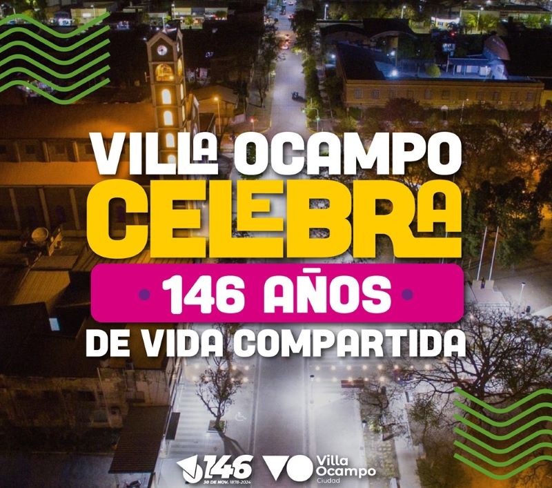 La Municipalidad de Villa Ocampo invita a la comunidad a participar en las diversas actividades programadas para conmemorar el 146° aniversario de la ciudad, celebrando años de historia, cultura y trabajo en conjunto.