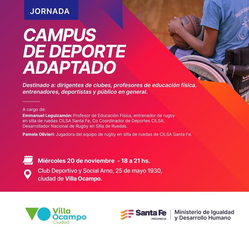 Organizada en colaboración con el Ministerio de Igualdad y Desarrollo Humano de la Provincia de Santa Fe, esta jornada busca promover el deporte adaptado en la comunidad y ofrecer herramientas para que dirigentes, entrenadores y profesionales del deporte puedan desarrollar prácticas inclusivas en sus espacios. La actividad es con entrada libre y gratuita para todos los interesados.