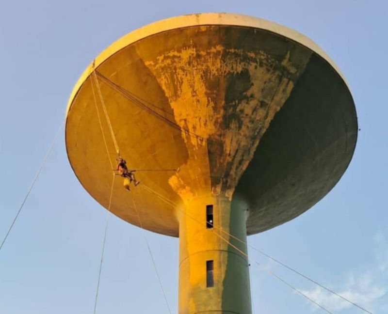 COTELVO Servicios inició los trabajos de reparación integral del tanque elevado de su planta potabilizadora, a cargo de la empresa Emiliano Castro de la localidad de San Genaro (Santa Fe), que consiste en un hidrolavado completo, refacción y pintura de todo el exterior de la edificación.