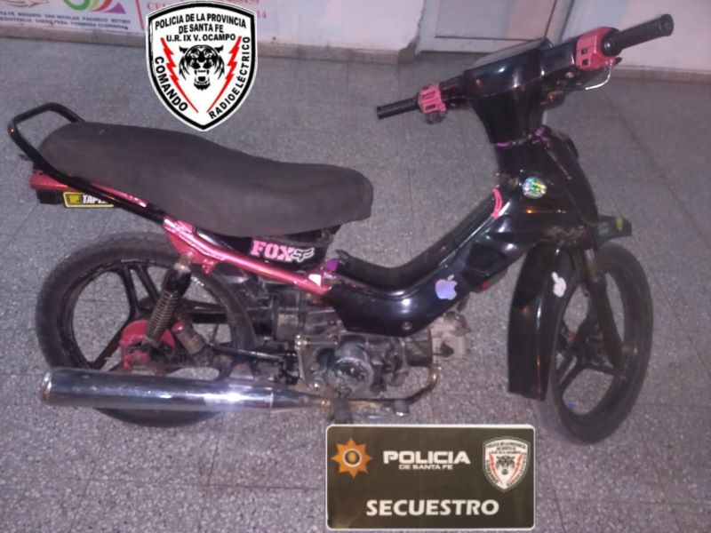 Con fecha 11-12-24 y siendo las 20,15 horas, personal del C.R.E. Zona Norte, momentos en que se encontraba realizando patrullaje preventivo en calles Santa Fe y San Lorenzo, de la ciudad de Villa Ocampo, divisan a una persona en una motocicleta que carecía de sus plásticos y chapa patente.