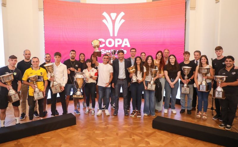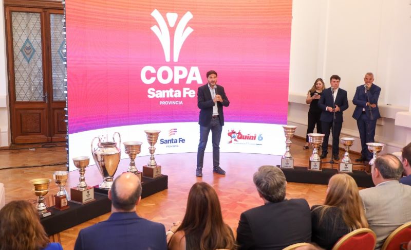 El gobernador Maximiliano Pullaro encabezó este viernes el balance de la Copa Santa Fe, iniciativa del Gobierno de la Provincia que en su edición 2024 convocó a más de 8.500 deportistas santafesinos que compitieron en 7 disciplinas (fútbol, voley, hockey, rugby, handball, maratón y triatlón), tanto femeninas como masculinas, generando instancias de participación de más de 150 instituciones de más de 50 localidades, creando lazos e inclusión social.