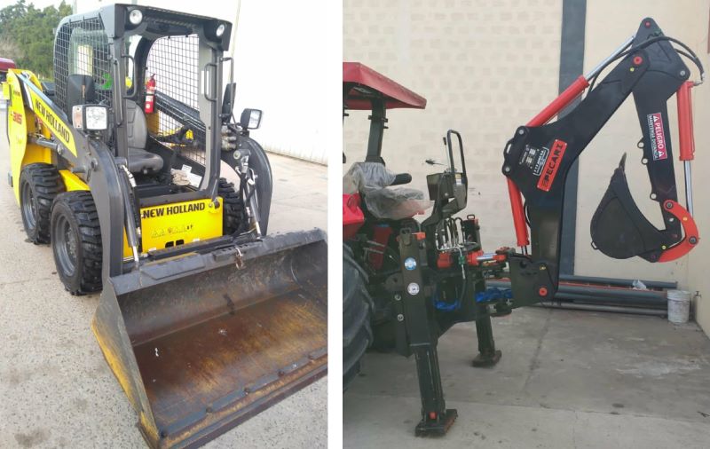 COTELVO Servicios pone a la venta una Minicargadora con Cuchara marca “New Holland”, modelo L315; y un Brazo Excavador con Pluma Desplazable marca “Pecari”.