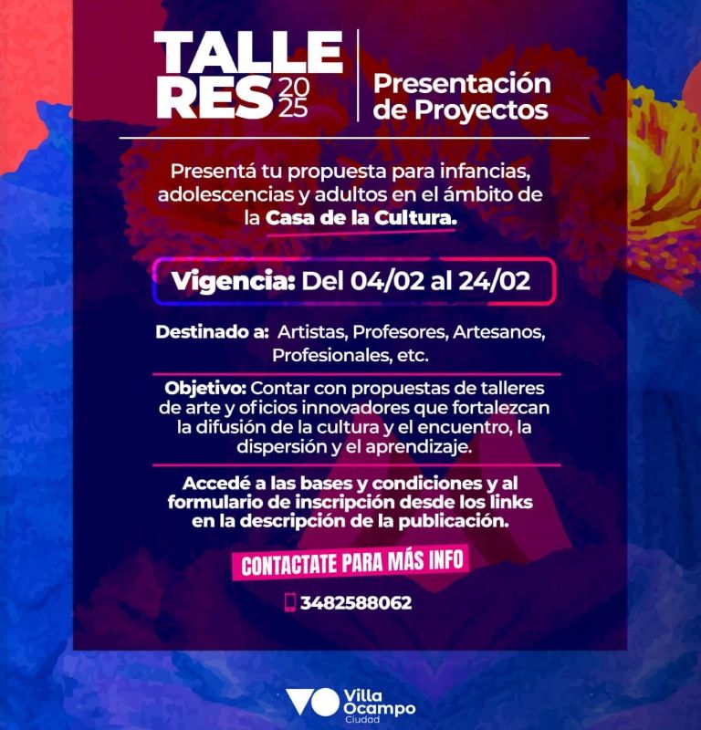 La casa de la cultura de la municipalidad de Villa Ocampo, convoca a la presentación de Proyectos de Talleres Culturales.