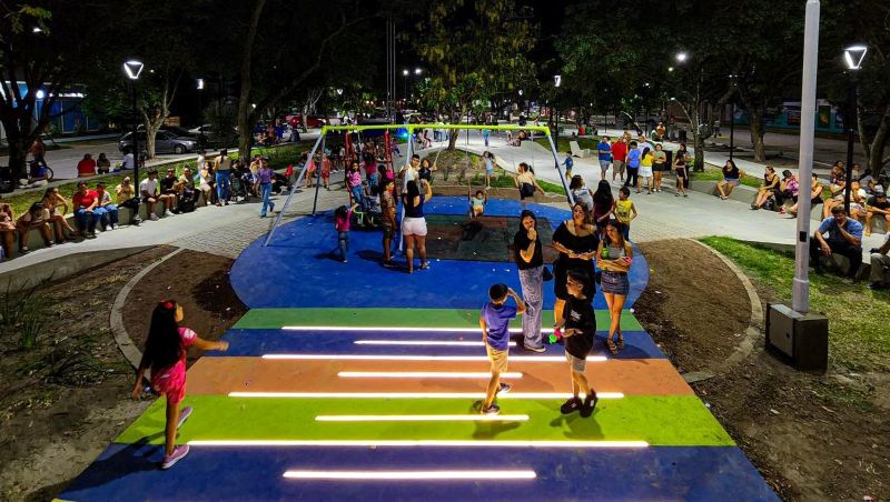 Inaugurada el pasado 3 de enero de 2025, la obra de remodelación de la Plaza “San Martín” y sus calles laterales, renovó y modernizó ese emblemático espacio público en pleno centro de la ciudad, el que genera una gran concurrencia de niños y sus familias.