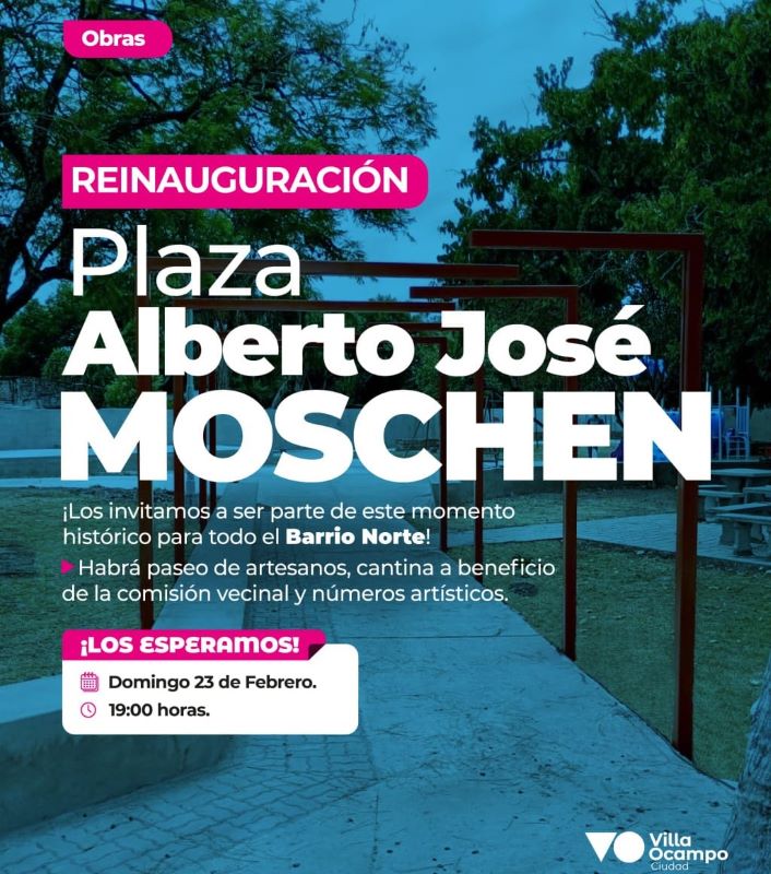 Las plazas son el alma de nuestros barrios. Son el punto de encuentro de los chicos que juegan, de los mates compartidos, de las charlas entre vecinos. Por eso, nos llena de alegría anunciar la reinauguración de la Plaza Alberto J. Moschen del Barrio Norte que vuelve a brillar con espacios renovados, más verde y más vida.