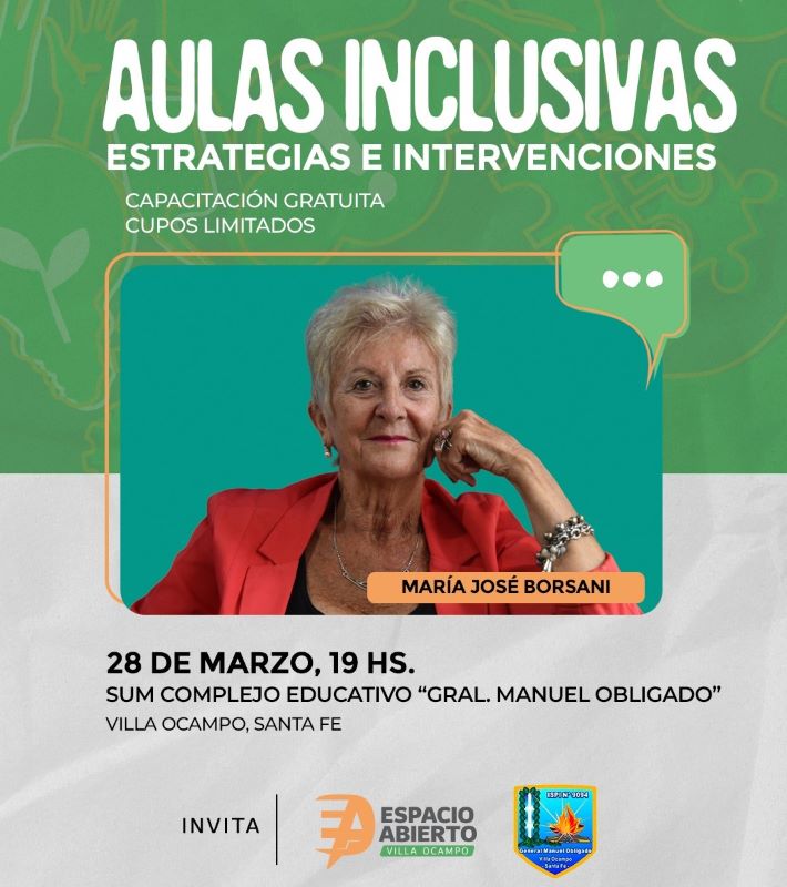 En busca de dar continuidad a los espacios de capacitación para profesionales y estudiantes de todos los niveles del sistema educativo, el equipo docente del I.S.P.I N° 9094 “General Manuel Obligado” y referentes de Espacio Abierto, emiten en conjunto la propuesta “Aulas inclusivas: estrategias e intervenciones”.