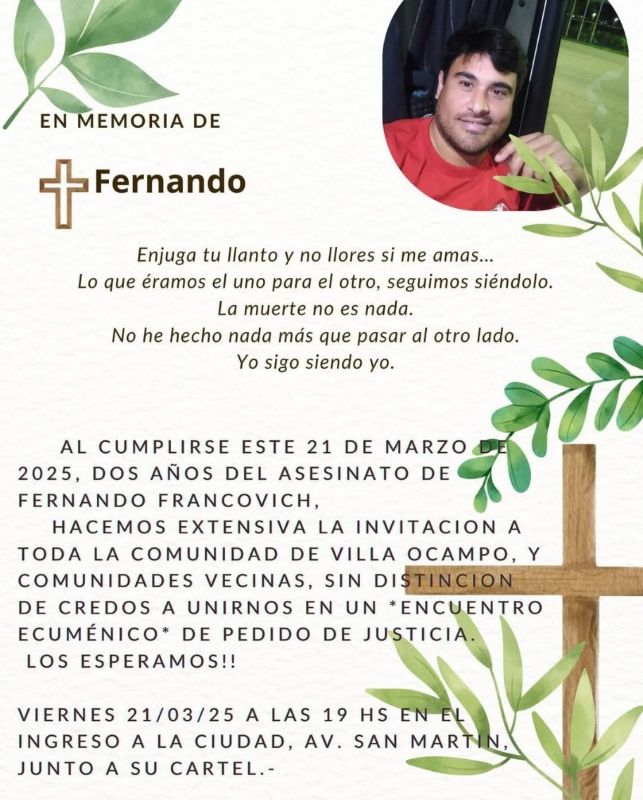 Este viernes 21 de marzo se cumplen dos años del asesinato del camionero oriundo de Villa Ocampo, Fernando Francovich, a manos de una banda que lo persiguió por la ruta y lo emboscó con la finalidad de asaltarlo, pero terminaron asesinándolo.