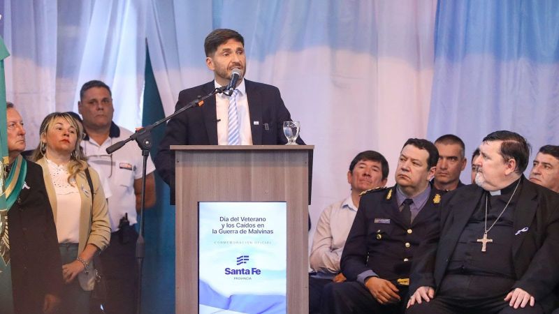 El gobernador Maximiliano Pullaro encabezó este miércoles en Reconquista el acto en conmemoración del Día del Veterano y los Caídos en la Guerra de Malvinas, al cumplirse el 43º aniversario de la gesta.