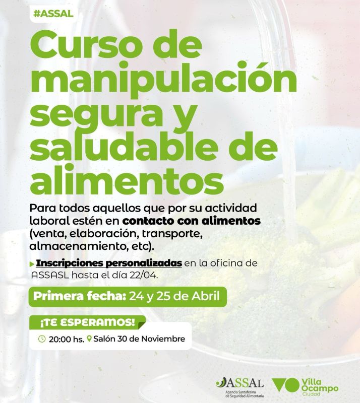 La municipalidad de Villa Ocampo, abre las inscripciones para el primer curso de Manipulación de Alimentos del 2025. Si trabajás en contacto con alimentos, ya sea en venta, elaboración, transporte o almacenamiento, esta es tu oportunidad para capacitarte.