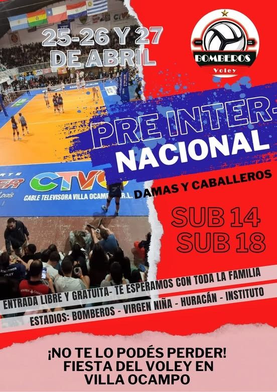 El mismo está organizado por Bomberos Voley de Villa Ocampo y los días a jugarse serán este viernes 25, sábado 26 y domingo 27 de Abril, en ambas ramas, categorías Sub 14 y Sub 18.