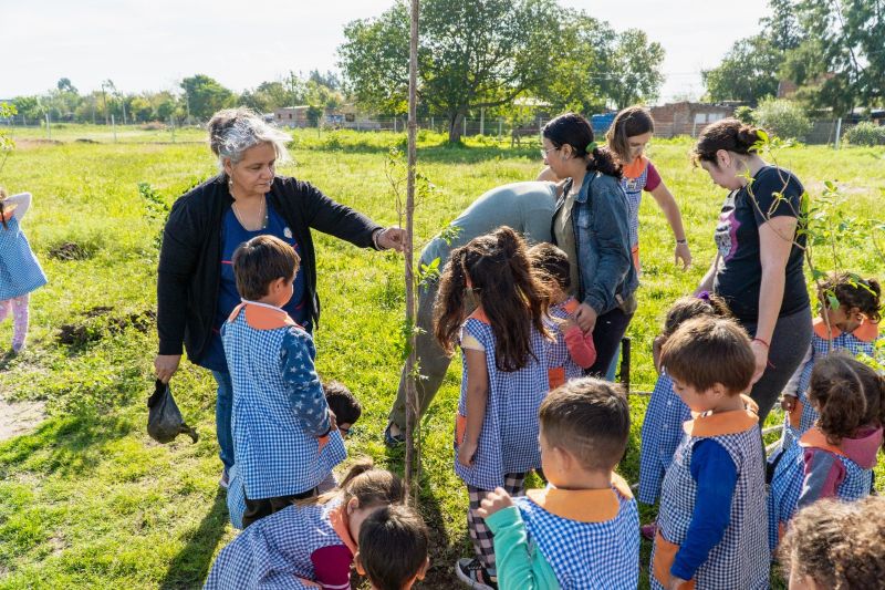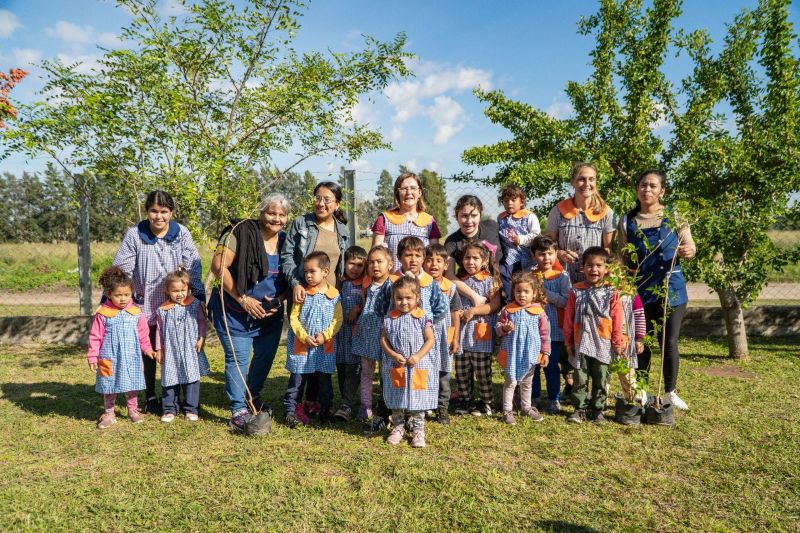 El Área de Espacios Verdes de la Municipalidad de Villa Ocampo, junto a la comunidad educativa del Jardín de Infantes 78, Núcleo Barrio 8 de Octubre, y del Centro de Alfabetización y Educación Básica para Adultos que funciona en el lugar, realizaron plantaciones de árboles producidos en el Vivero Inclusivo Municipal, en el nuevo perímetro de cerramiento del predio del establecimiento escolar.