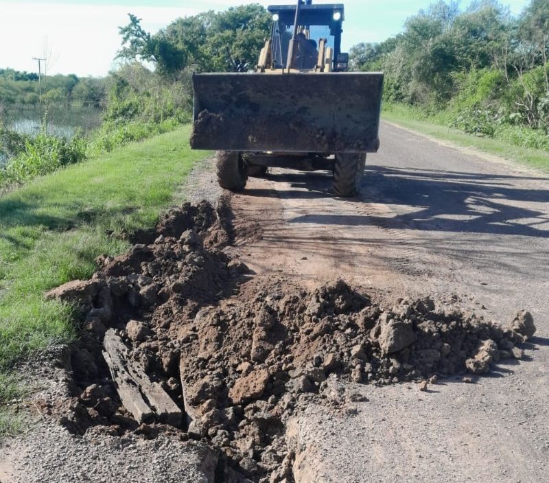 Reparación de socavones en el camino al Paraná Miní en Villa Ocampo