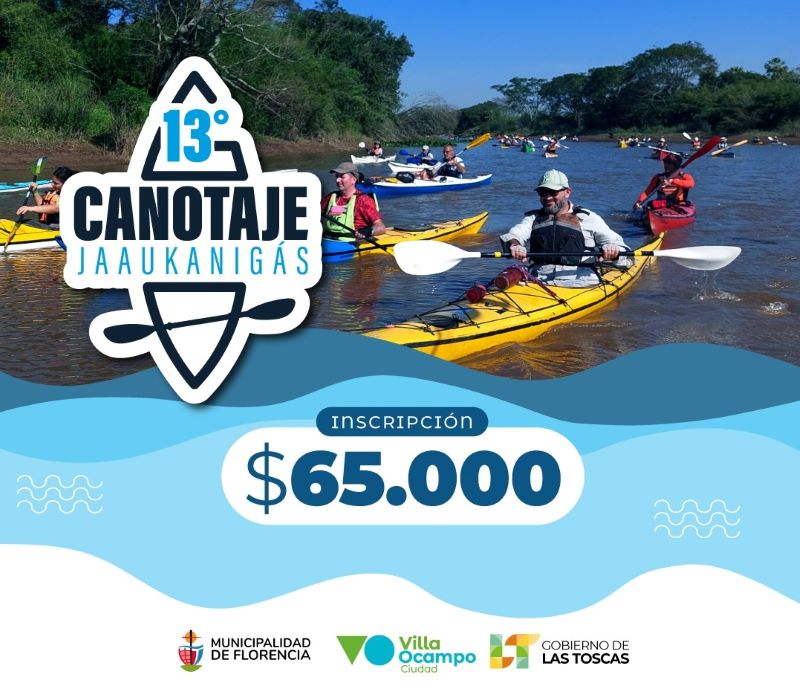 El Área de Turismo de la Municipalidad de Villa Ocampo te invita a vivir una experiencia única para disfrutar del río, la naturaleza y la buena compañía; ya podés inscribirte para participar del 13º Canotaje del Jaaukanigás, los días 20 y 21 de junio.