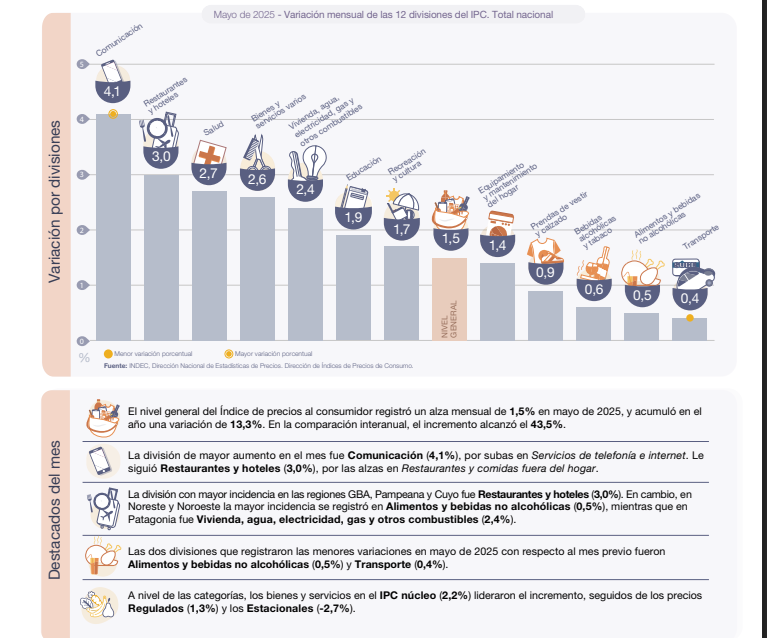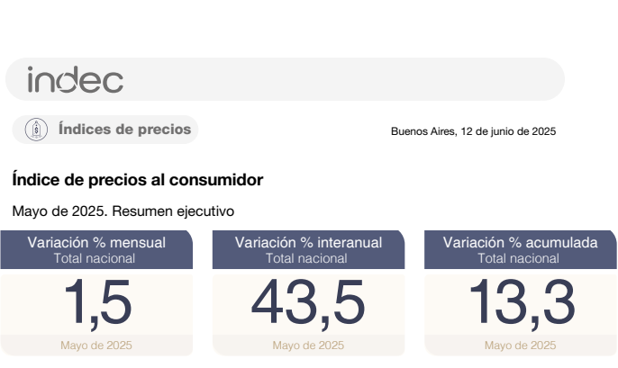 Así lo informó el INDEC, cuyo dato marca una desaceleración de 1,3 puntos respecto a abril. El Gobierno destacó que es el número más bajo en 5 años. En lo que va del 2025, los precios acumulan un aumento del 13,3%.