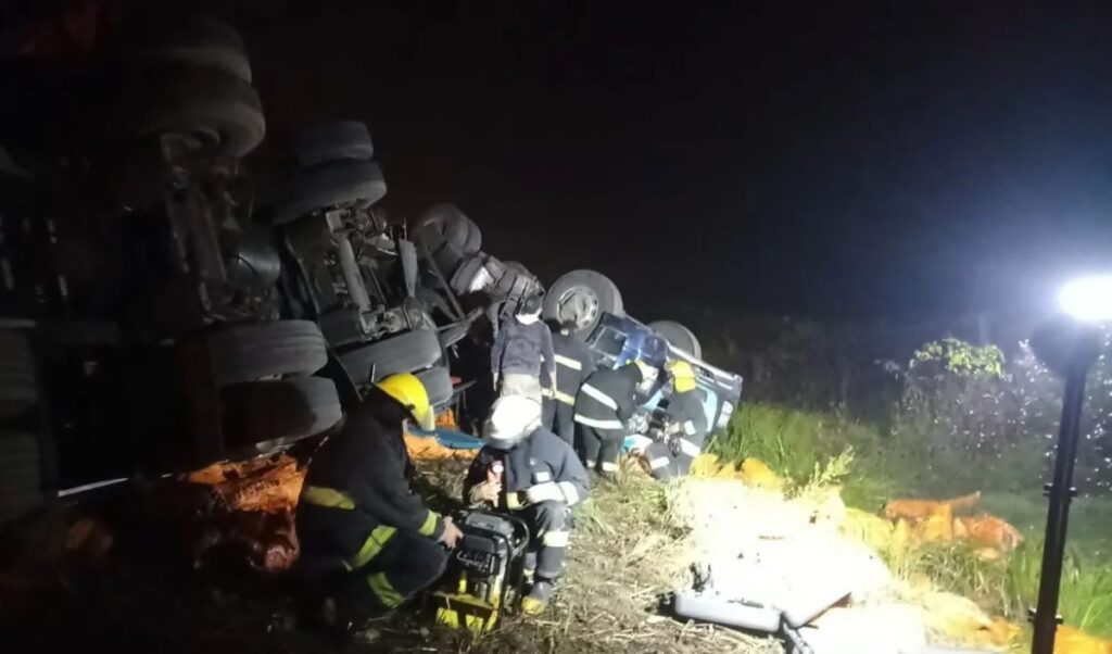 Según se pudo establecer, el camionero circulaba en dirección al Norte cuando perdió el control, cruzándose al carril contrario, y terminó volcando en la banquina, con la carga incluida. Aparentemente transportaba bolsas de papas.