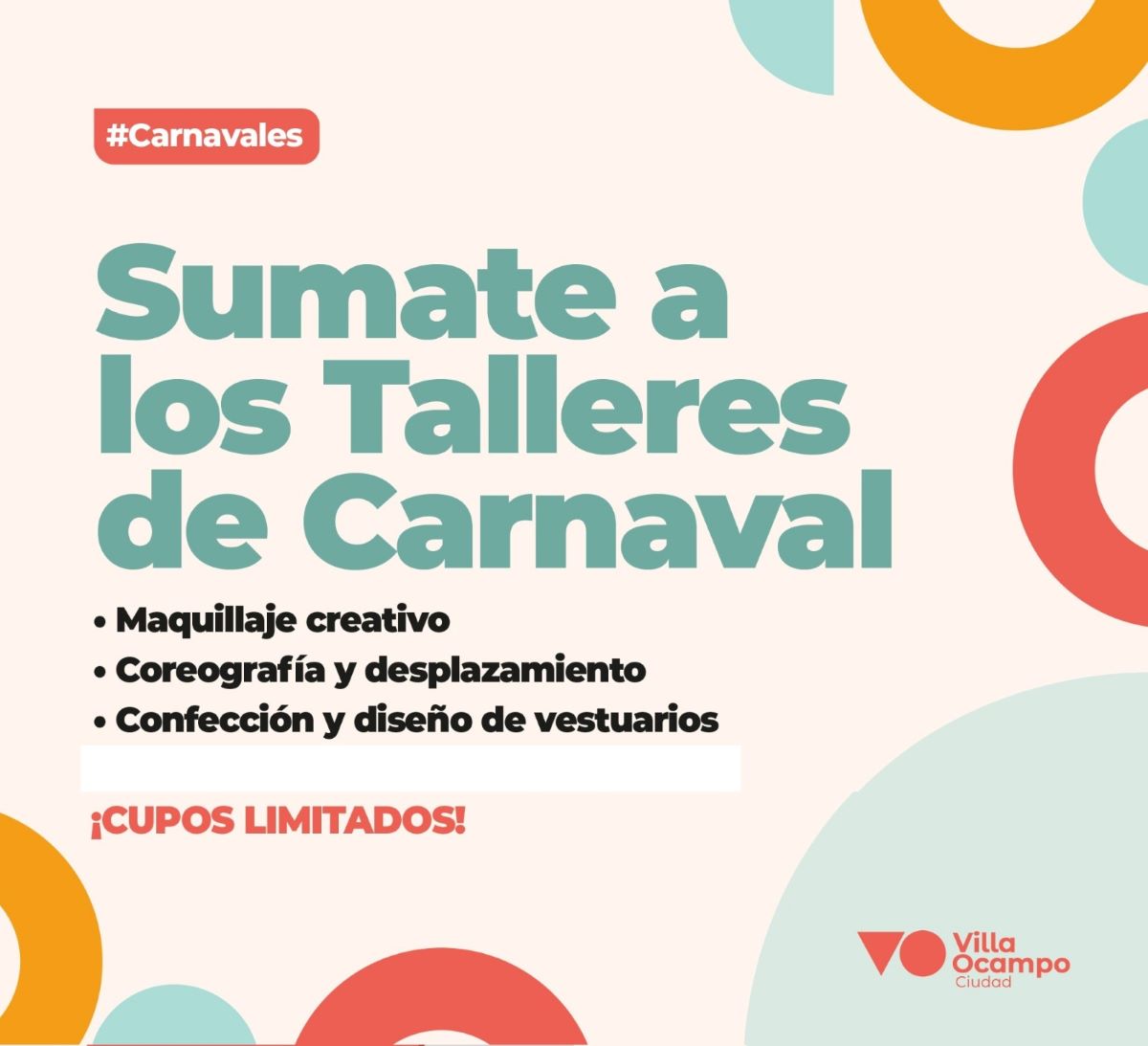 La Secretaría de Cultura y Comunicación de la Municipalidad de Villa Ocampo anunció la apertura de inscripciones para los Talleres de Capacitación para Comparsas, destinados a trabajadores, artistas y personas afines al mundo del carnaval.