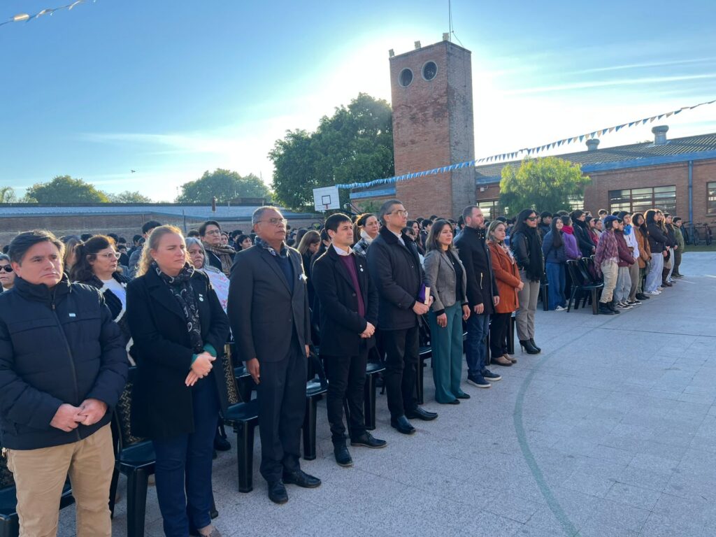 Este viernes 4 de julio, se llevó a cabo el acto conmemorativo por el Día de la Independencia en el patio de la Escuela de Educación Técnica Nº 619 “Pbro. Luis Spontón”, con la presencia de autoridades municipales, miembros del gabinete, concejales, docentes, alumnos, familias y medios de comunicación.