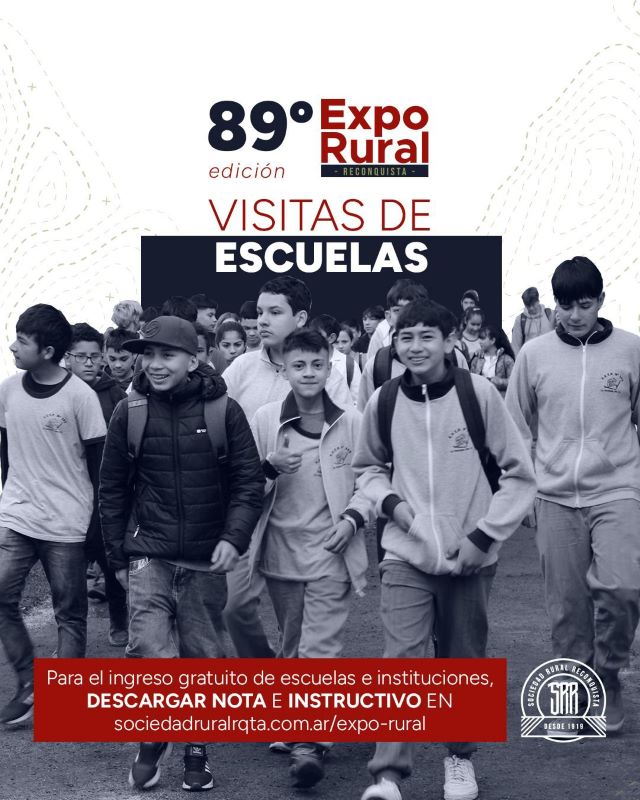 A través del sitio web https://sociedadruralrqta.com.ar/expo-rural/, las instituciones podrán acceder al instructivo con la documentación necesaria para recorrer la muestra de manera gratuita.