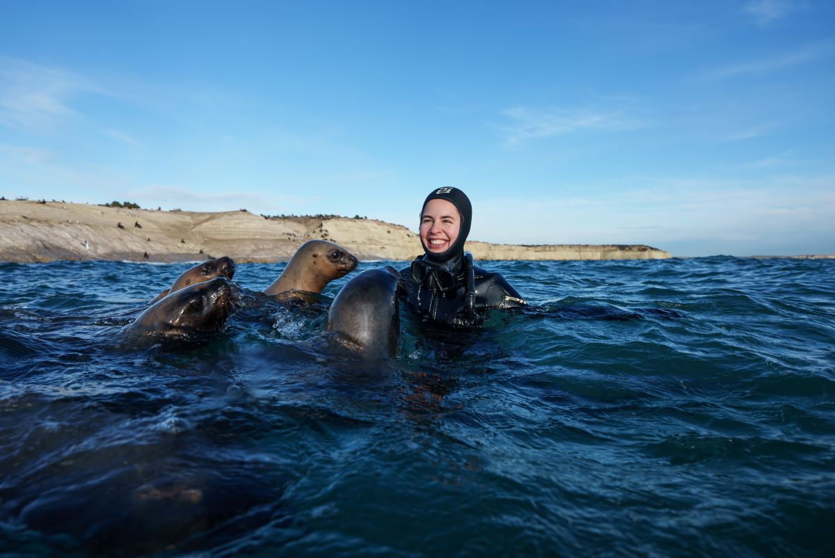 Snorkeling y buceo con lobos marinos: se trata de una experiencia que se desarrolla principalmente en la Reserva de Punta Loma, un área protegida donde los visitantes pueden interactuar de cerca con estos mamíferos marinos en su entorno natural. Es una actividad accesible para la mayoría de los niveles de experiencia, desde principiantes con snorkeling hasta buzos certificados.